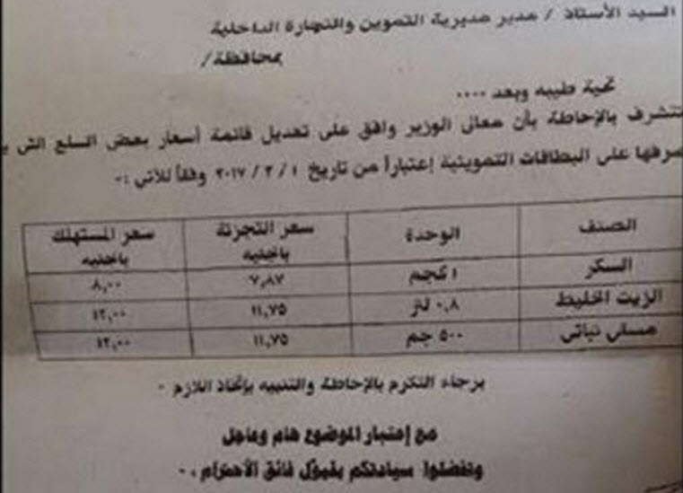 التموين تشدد على شركتي الجملة صرف المقررات بالأسعار الجديدة مستند جريدة المال